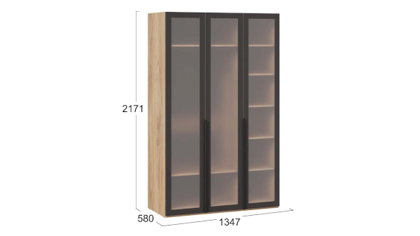 Шкаф для одежды 580 со стеклянными дверями Порто СМ-393.07.117 (ТриЯ)