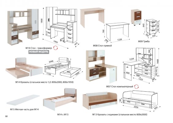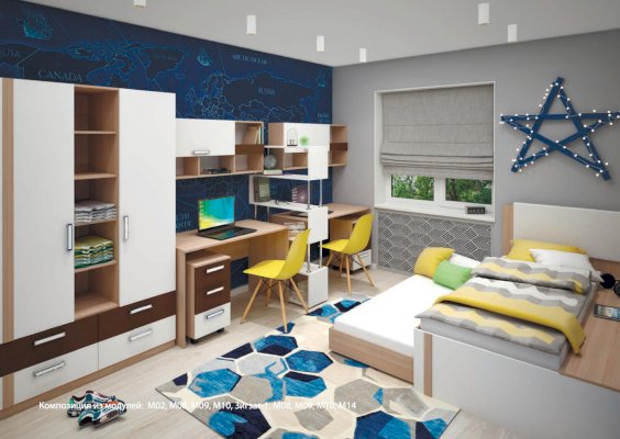 1. Есть модули для функционального обустройства комнаты двоих детей.