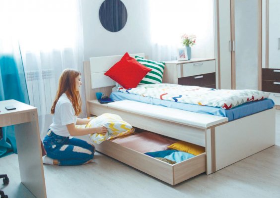 8. Необычная кровать М14 со столешницей и большим выкатным ящиком.