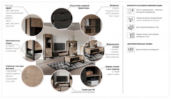 Модульная гостиная Стокгольм Дуб гранж песочный/Железный камень (Империал) - за 44 840 руб. в Ярославле. Купите на сайте yaroslavl.onlinemarketmebeli.ru или по телефону 8(800)505-30-63 уже сегодня! Уточнить наличие, комплектацию, актуальную цену можно бесплатно у менеджера ежедневно. Закажите Модульная гостиная Стокгольм Дуб гранж песочный/Железный камень (Империал) до конца акции! Доступна покупка в кредит, рассрочку. Доставим со склада или на заказ.