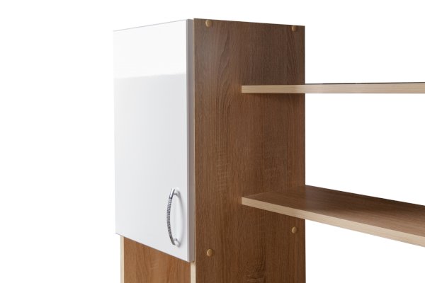 Пенал (дополнительная секция) превращает простой функциональный стол в полноценную рабочую зону, он вмещает закрытые полки для хранения документов и две ниши под дополнительную оргтехнику.