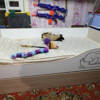 В общем кровать понравилась. Радует что второе место не очень высоко как в двухьярусных кроватях. Т к тогда дети ссорились бы кто спит на верху. Экономит место т к на день задвигается нижнее спальное место. Милый котик радует глаз. Низ выкатывается на колесиках. Сборка по инструкции не заняла много времени.все края везде окантованы. Доставка вовремя, спасибо продавцу.