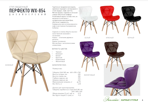 Дизайнерский стул ПЕРФЕКТО WX-854 - простая, но тщательно продуманная модель, идеально подходит к интерьерам в стиле модерн, лофт, хай-тек. Мягкие формы сидения и стеганой спинки обеспечат комфорт. Устойчивый каркас основания, из металла в сочетании с натуральным массивом бука, обеспечит надежность. Стул ПЕРФЕКТО WX-854 органично впишется практически в любую среду дома и офиса, универсальный для использования в кафе и ресторанах (направление «Horeca»).