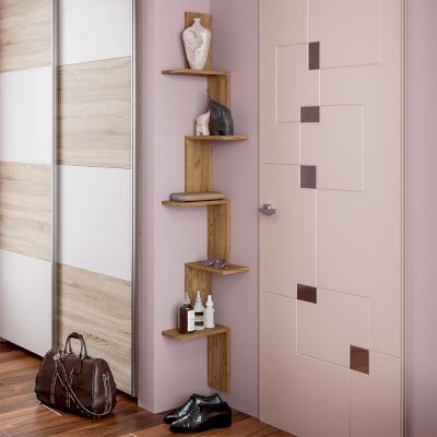Угловая полка Стайл станет не только практичным решением, но и очень стильным предметом интерьера. Выполненна из ЛДСП. На ней вы сможете расположить рамки с фотографиями, книги, домашние цветы и другие необходимые вещи.