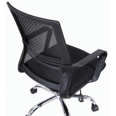 Спинка кресла выполнена из прочного сетчатого акрила с оригинальным "узором". Материал обладает высокой воздухопроницаемостью, легко чистится, способен подстраиваться под физиологические изгибы спины, при этом сохраняет форму и не растягивается. Залогом комфортного использования кресла также является эргономичная форма надёжного пластикового каркаса.