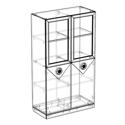 Конструкция шкафа-витрины включает 4 ниши за стеклодверками - здесь найдут свое место ваши памятные фото, сувениры и книги. В нижней части можно скрыть от глаз различные предметы обихода и личные вещи.