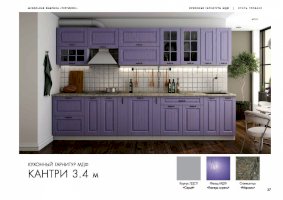 Ослепительная чистота и свежеть царят на кухне, обставленной мебелью из гарнитура «Кантри». Особую атмосферу создает отделка бирюзового, голубого, сиреневого цветов. Простой дизайн и хорошо различимая текстура натуральной древесины придает интерьеру деревенскую стилистку. Для изготовления комплекта использованы качественные и экологичные материалы.