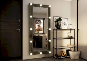 Большое зеркало Инстайл – это предмет интерьера, который помимо своей основной функции, позволит вам визуально расширить пространство и привнести больше света в помещение. Модель можно разместить в любой комнате, как вертикально, так и горизонтально. Рама зеркала изготовлена из ЛДСП в цвете бетон и дополнена по всему периметру лампочками с выключателем.