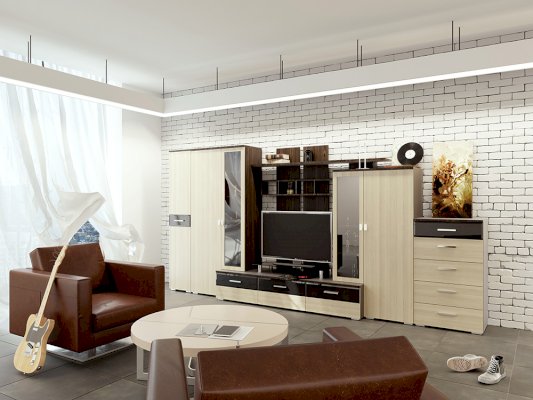 Модульная серия Куба — это отличное решение потребностей современного покупателя. Стильный дизайн, строгость линий, благородный цвет и качество исполнения — вот составляющие успеха этой гостиной.