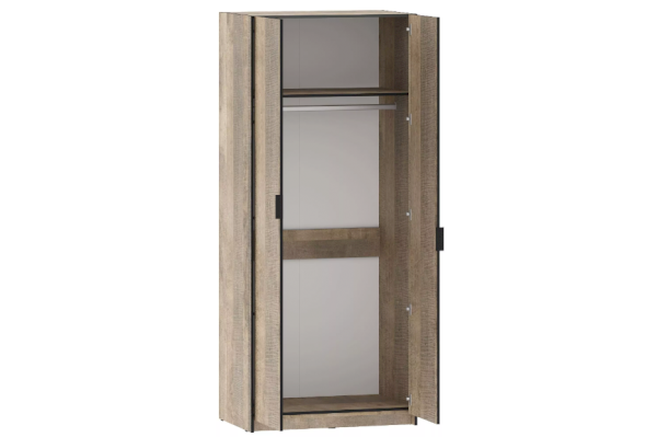 Шкаф для одежды из коллекции ФОЛК легко впишется в интерьер спальни в стиле Лофт, придав ей современный и монументальный вид. Черные лаконичные ручки подчеркивают оригинальный дизайн мебели, а черная кромка эффектно выделяет фасад изделия.