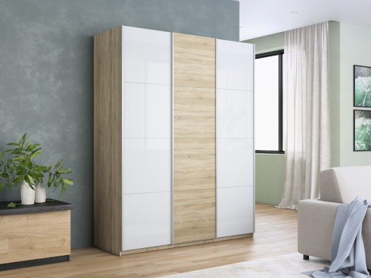 Серия «Прайм» отличается доступностью и функциональностью Навесные двери и лаконичная отделка фасадов создают прогрессивный дизайн. Подойдет тем, кто любит компактную и изящную мебель. Алюминиевые ручки и верхний ходовой профиль обеспечивают легкость и прочность конструкции. Многолетняя безупречная работа благодаря высококачественной немецкой фурнитуре Hettich. Прочная ПВХ-кромка толщиной до 1 мм защищает края от сколов и повреждений. Плавный ход дверей обеспечивает надежная система Hettich Top Line M. Дополнительно можно установить доводчики. Снаружи нет заглушек и винтов благодаря стяжечной системе крепления полок на флипперах, а корпус усилен эксцентриковыми стяжками. Навесные двери скрывают раздвижной механизм от глаз. Они надежно удерживаются в направляющих и не соскакивают. Каждая дверь поделена на 4 секции Секции расставляются в произвольном порядке, создавая новый дизайн фасада.