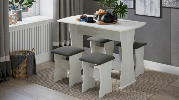 Обеденная группа Тип 1 – это комплект, состоящий из стола и табуретов, изготовленный в одном стилистическом решении. Классический дизайн, доступная цена и разнообразие расцветок набора позволяют приобрести подходящую модель для помещения, оформленного в любом стиле.