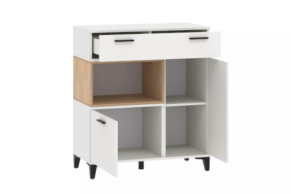 Удобная и функциональная тумба Bergen в современном скандинавском стиле является незаменимым элементом любой спальни и гостиной. Ярко выраженные элементы в виде контрастных вставок цвета дерева и черных ручек подойдут для светлых и темных интерьеров.