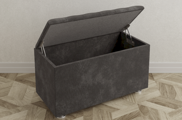 Стильная и удобная банкетка прекрасно дополняет собой любую кровать. Банкетка имеет скрытую емкость для хранения, которая становятся доступна при открытии сиденья.