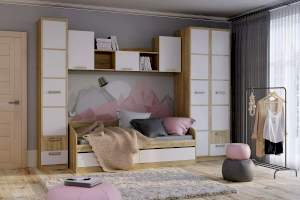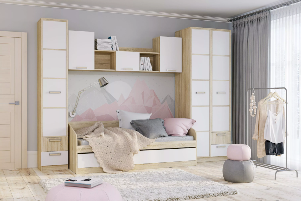 Полка НМ 011.39-01 М сделает рабочую зону в детской еще более функциональной. Модуль состоит из трех закрытых отделений и двух открытых ниш. В боковых отделениях предусмотрена полка для размещения книг. Открытые ниши подойдут для размещения декора, фотографий или игрушек.