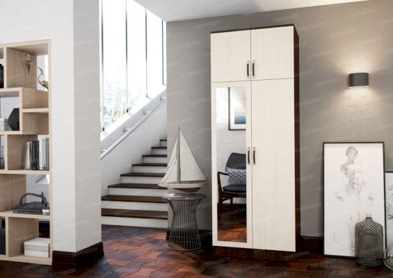 Распашной шкаф «Анна» отлично смотрится в современных интерьерах. Двустворчатая модель выглядит компактной и не загромождает собой пространство. Она отличается простым, но далеко не безликим дизайном. Искусная комбинация отделки контрастных цветов, темные ручки на фоне светлых дверей, а также ассиметричное расположение зеркала делают эту вещь интересной и запоминающейся.