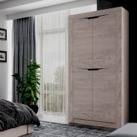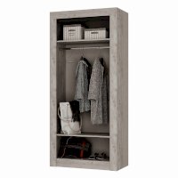 Двустворчатый распашной шкаф «Леонардо» с просторной антресольной полкой для хранения головных уборов, горизонтальной хромированной штангой для плечиков и нижней полкой, в которой удобно хранить коробки с обувью, выдержан в общей стилистики коллекции. Сборка универсальна.