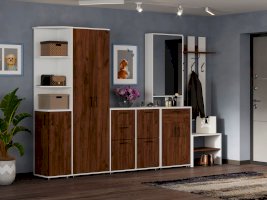 Тумба с зеркалом в прихожую. Снизу находиться вместительная тумба под обувь, сверху трельяж за закрытым зеркалом. Также имеется выдвижной ящик для различных мелких предметов. Может быть использована как дополнительный модуль ПР-7 или как самостоятельно изделие.