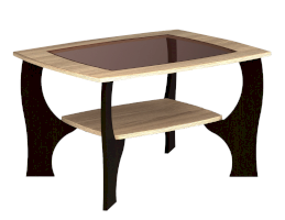 Стол журнальный станет прекрасным украшением интерьера. Столешница оснащается вставкой из тонированного стекла. Фигурные ножки прикрепляются к столешнице и небольшой круглой полочке.