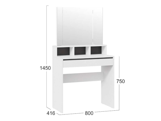 Помимо внешней привлекательности стол оснащен большим зеркалом с поворотными зеркальными створками, вместительную столешницу с надстройкой и выдвижной ящик. Благодаря удобным отсекам, вы сможете организованно хранить все необходимые аксессуары и косметику, обеспечивая легкий доступ к ним в любой момент. Это поможет поддерживать порядок и удобство в Вашем уголке красоты.