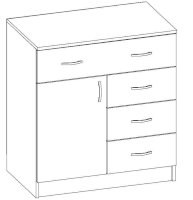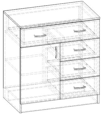 • Корпус, полки и фасады изготовлены из ЛДСП 16 мм с кромкой ПВХ 0,4 мм.