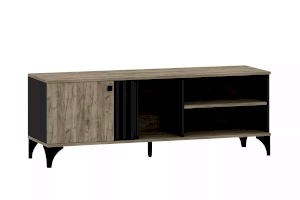 Тумба оснащена тремя открытыми нишами, в которых можно расположить аудио- и видеоаппаратуру, а также полкой за распашной дверкой с системой доводчиков, благодаря которым дверка закрывается плавно и бесшумно, а высокие опоры обеспечивают быстрый и легкий доступ во время уборки.