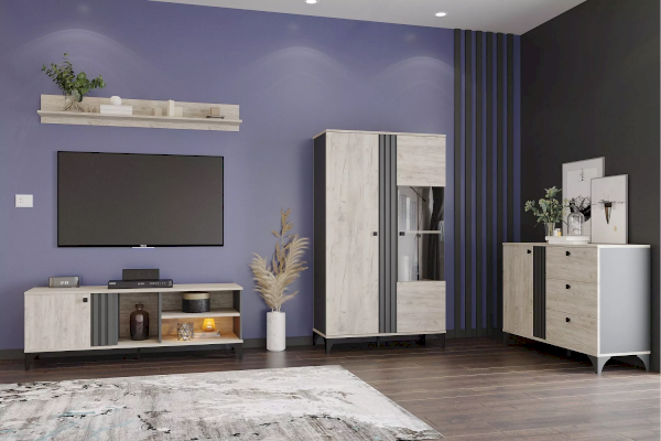 Тумба ТВА Отис предназначена для тех, кто ищет необычный дизайн в модной цветовой гамме дуба с контрастным антрацитом. Строгая геометрия форм придает сдержанности и минимализма, а изящные 3D полосы добавляют классического благородства.