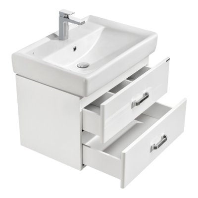 Современная лаконичная подвесная модель тумбы с двумя ящиками AQUATON Америна 70 имеет ширину 70 см и выполнена в белоснежном глянцевом цвете. Корпус изготовлен из влагостойкой ЛДСП, а фасад - из высококачественной МДФ. Широкий и вместительный нижний ящик предназначен для крупных предметов, а в верхнем имеется специальная организация пространства, позволяющая хранить мелкие вещи. Ящики снабжены доводчиками и системой бесшумного и плавного закрывания. Корпус и фасады покрыты полиэфирной краской ультрафиолетового отверждения, обеспечивающей дополнительную защиту от влаги.