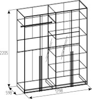 Четырехдверный шкаф для одежды и белья с зеркалами — находка для спальни любых габаритов. Продуманное внутреннее наполнение шкафа делает его поистине универсальным. Шкаф оснащен отделениями для хранения белья с регулируемыми по высоте полками и отделением для одежды со стационарной штангой.