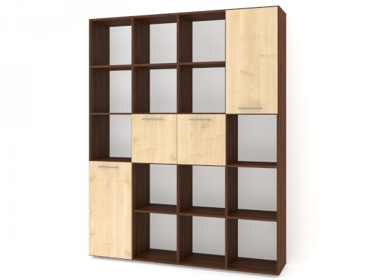 Применение задней стенки из ЛДСП (в ячейках с фасадами) позволяет использовать данный стеллаж для зонирования пространства (чтобы предотвратить опрокидывание, необходимо обеспечить крепление стеллажа к стене).