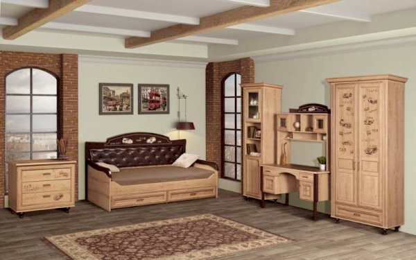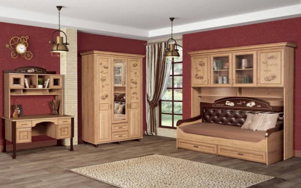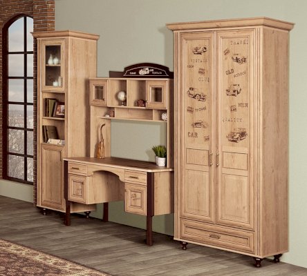 Мебель для детской комнаты «Ралли» – вариант мебели для мальчика, выполненной на базе модулей «Алиса». В основу дизайна модели положена тема гонок и ретро-машин, которыми украшены фасады. Это удачная альтернатива морской темы, так популярной в классической мебели. Кроме того в дизайне угадываются черты стиля Кантри, благодаря использованию древесного декора и патины на фасадах. Несомненным плюсом детской «Ралли» является большое количество различных модулей, позволяющих собрать комплект для детской комнаты любого размера. Мебель весьма практична в использовании, благодаря износоустойчивым материалам на горизонтальных поверхностях, качественным металлическим ручкам и надежной фурнитуре «Hettich». Для плавного и бесшумного закрывания дверей шкафы комплектуются амортизаторами ударов.