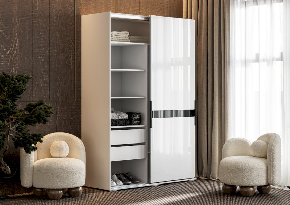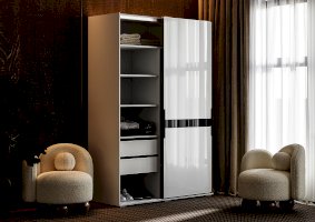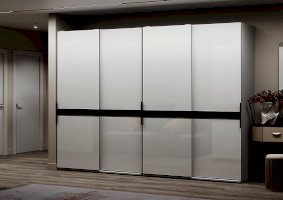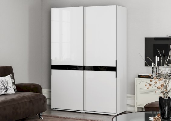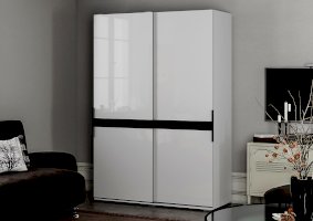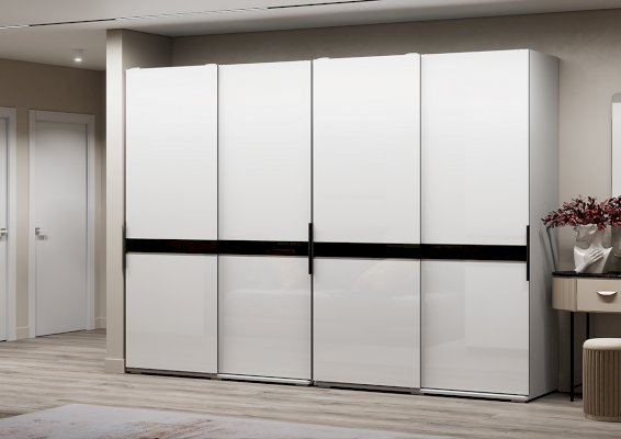 Шкаф-купе Оскар с глянцевыми фасадами, декорированными черным стеклом, станет эффектным акцентом в любом помещении, гармонично сочетаясь с другими элементами дизайна интерьера