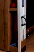 Подростковая кровать-тахта с большим выкатным ящиком на роликах, который можно использовать как место для хранения или как дополнительное спальное место. Он открывается за ручку-карман. Такой импровизированный карман дает возможность аккуратно сложить необходимые перед сном вещи: книгу, телефон, любимую игрушку.