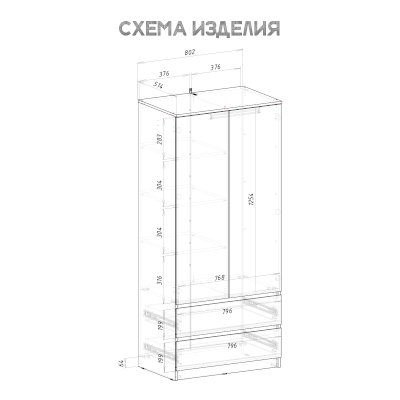 Шкаф двухстворчатый «Симпл» (ШК-03) — минималистичный двухстворчатый шкаф станет хорошим дополнением как к классическому, так и к современному интерьеру. В двух выдвижных ящиках удобно хранить обувь или белье. За распашными дверцами размещена штанга для хранения верхней одежды.