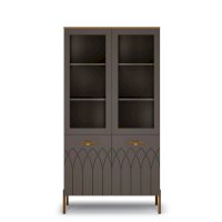 Шкаф-витрина имеет четыре отделения, два из них со стеклодверками для открытого хранения. Разместив здесь красивую посуду и сувениры – вы сможете украсить интерьер вашего дома.