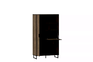 Шкаф оснащен распашной дверкой, которая закрывается мягко и легко за счет механизма с доводчиком, а газлифты фиксируют дверцу в открытом положении. Благодаря большому количеству закрытых и открытых ниш можно удобно расположить все необходимые книги и предметы интерьера, они не будут разбросаны в хаотичном порядке, а высокие опоры обеспечивают быстрый и комфортный доступ при уборке. Дополните шкаф стеллажом из одноименной коллекции, чтобы создать особо гармоничную атмосферу