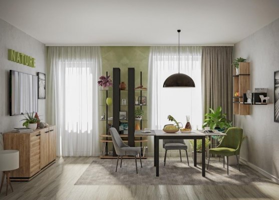 Изящный и стильный стеллаж с открытыми полками станет значимой интерьерной деталью гостиной. Комбинация стеклянных полок и элементов «под дерево» выглядит стильно и очень современно. Благодаря невидимым глазу креплениям создается впечатление, что стеклянные полки парят в воздухе. Но несмотря на кажущуюся легкость и воздушность, тонированное стекло выдерживает нагрузку до 5 кг, что позволит разместить на стеллаже комнатные растения или предметы декора. Регулируемые опоры слегка приподнимут стеллаж над полом, облегчая уборку, а также позволят компенсировать незначительные неровности пола.