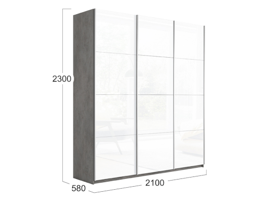 Трехдверный шкаф-купе со стеклом Траст 2100 (Трия)