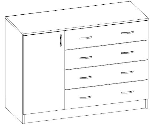 • Корпус, полки и фасады изготовлены из ЛДСП 16 мм с кромкой ПВХ 0,4 мм.